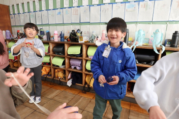 1年生の生活科です。「せんせー、みてみてー」とできるようになったことを見てもらいたい子たちがたくさんでした。