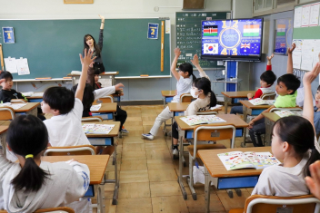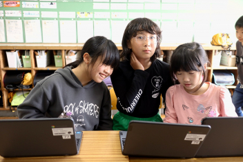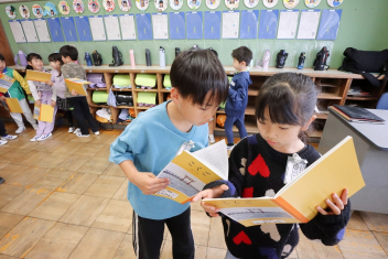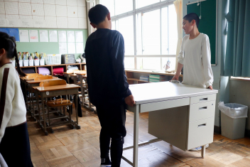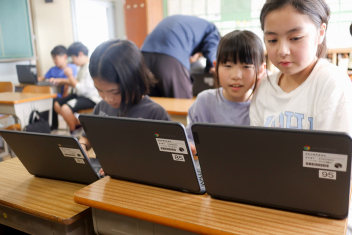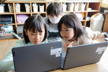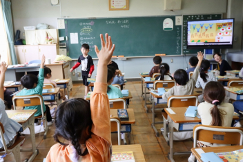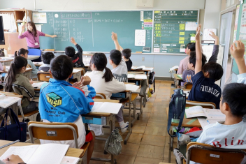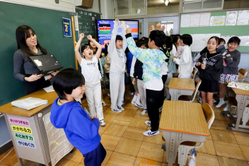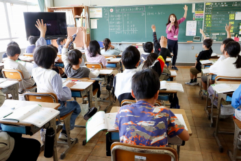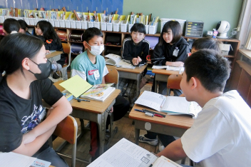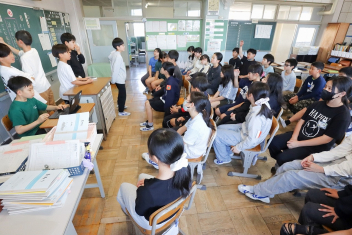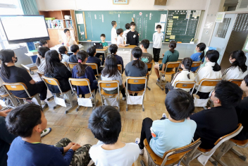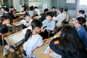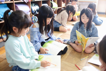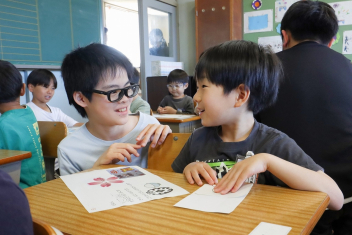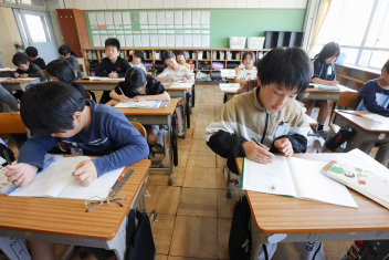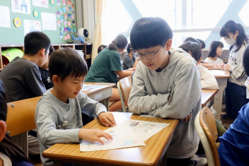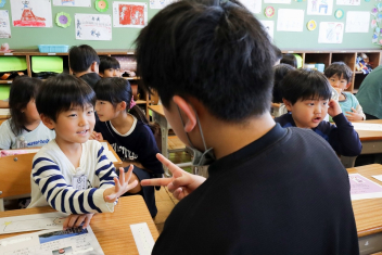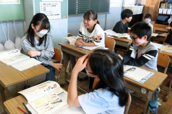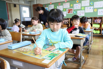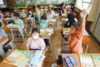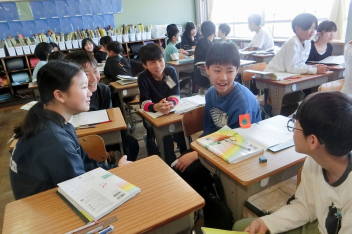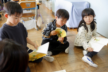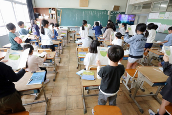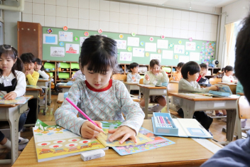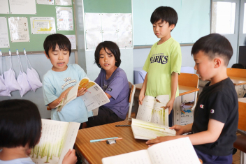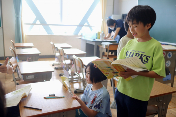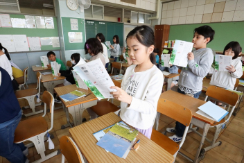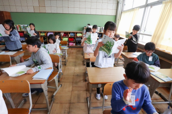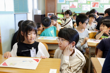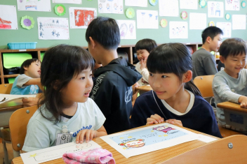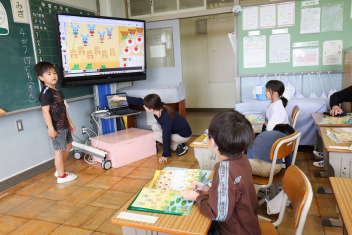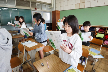 3年生の国語の時間です。立ったり座ったりしながら楽しく巻頭の詩を読んでいました。