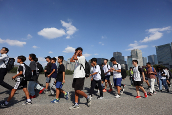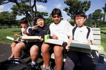 見学地以外にも、超高層ビルの建ち並ぶ様子や東京湾に浮かぶ台場やレインボーブリッジ、街路樹の銀杏の実の匂い、大理石の壁や赤絨毯の感触など、大都会東京を五感で感じることができましたね。