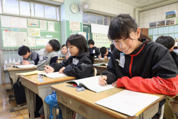 4年生は国語の時間に冬の楽しみを題材にした俳句を作っていました。「かるたにしたい」という子供たちの意見で、急きょかるたづくりを行うようです。完成したかるたで遊ぶのがが楽しみですね。