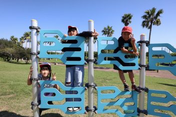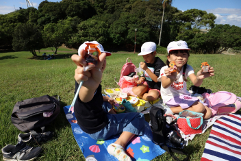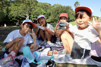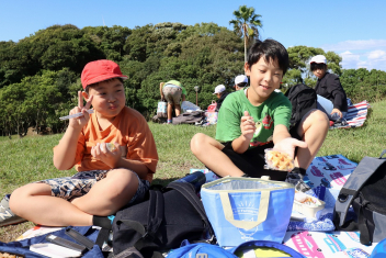 昼食休憩の時間を過ごした竜洋海洋公園です。お家の方に作っていただいたお弁当をおいしくいただき、楽しく元気に過ごしました。