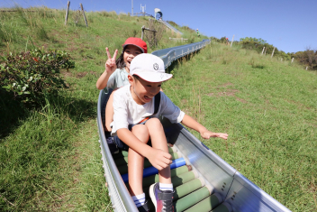 フルーツパークに到着して、まずは、りんご狩り体験をしました。りんごの色合いや大きさをよく見て、自分の納得できるりんごを採ろうと、みんな必死です。