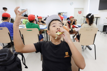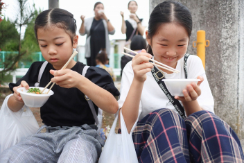今日の給食は中華メニューでしたね。食べっぷりのいい3年生です。