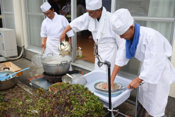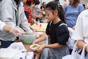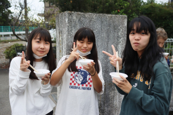 河輪会館では焼き芋、おもち、豚汁、お蕎麦がすべて無料でふるまわれたくさんの方でにぎわいました。「すべて無料ってとこがうちら(河輪)らしいよね」と、長い行列に並んでいましたね。さすが大収穫祭。地域の方々の意気込みを感じました。