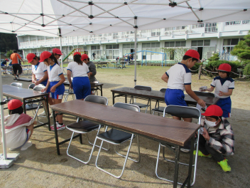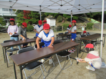 地震が起こった後に、火災が発生した想定で避難訓練を行いました。