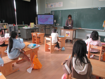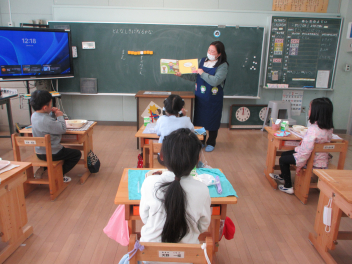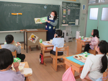 1年生には、食事のマナーについての絵本の読み聞かせを行ってくれました。