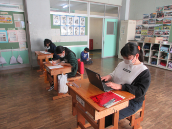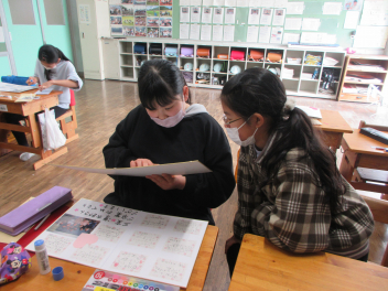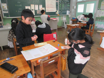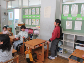 来年度のスタートに向けて、委員会の引継ぎを行い、4年生が仕事を教えてもらいました。