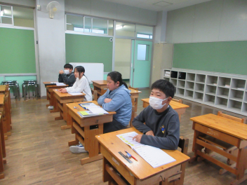 静かな教室で、集中して問題を解いていました。