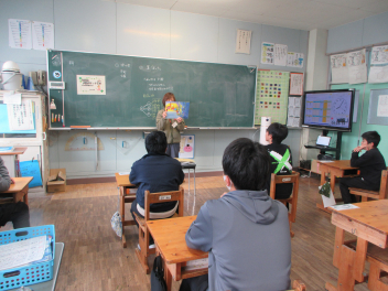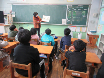 ひらがなやカタカナを黒板に書いて、気を付けるところをみんなに説明していました。
