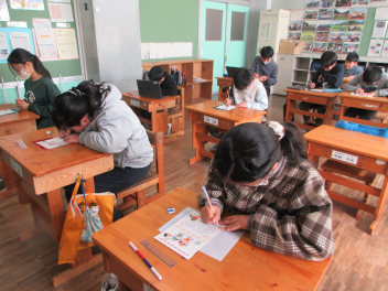地域のお年寄りへお弁当と一緒に配布してもらう手紙を書いていました。