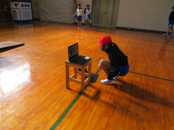 跳んだ後すぐに、自分が跳んだ動画を確認しながら、次に気を付けることを自分で見つけて取り組んでいました。