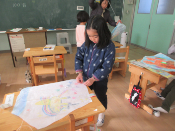 今朝は雪がうっすら見え、寒かったですが、子供たちは元気よく外で凧あげをしました。