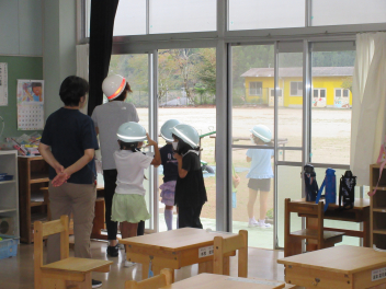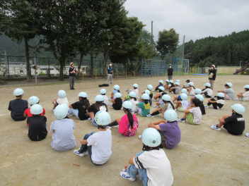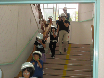 地震が起こった後に、火災が発生した想定で避難訓練を行いました。