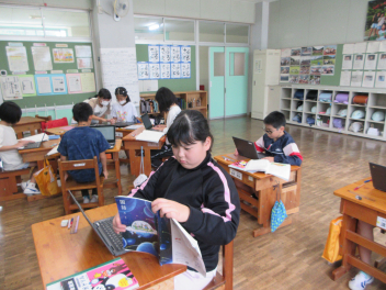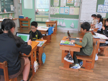 算数の学習をしたり、修学旅行のおすすめの場所のプレゼンを作成したりしていました。