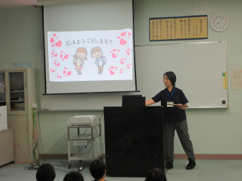 朝活動は、お話ポケットのみなさんの読み聞かせでした。