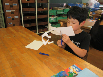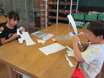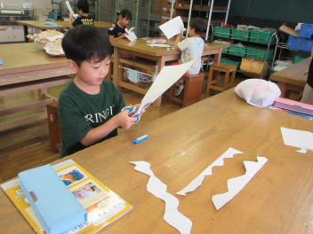 はさみを使って、ギザギザやくねくねの線を切っていました。