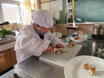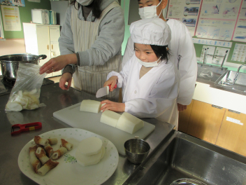 協力して、みんなでちくわを切ったり、大根を切ったりして作っていました。