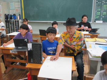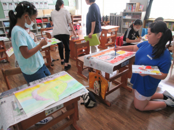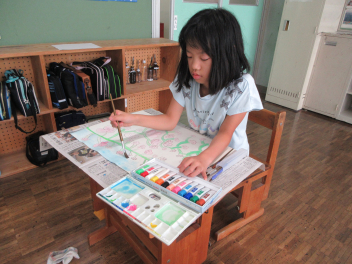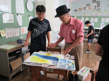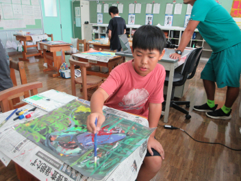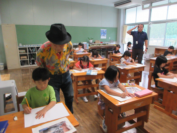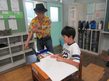 子供たちは、康雄先生に教えていただきながら、3時間、絵を描く活動を楽しみました。