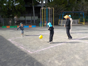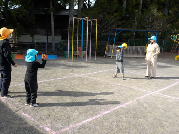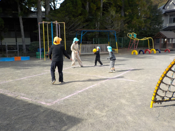 幼稚園に帰って来て、ドッジボールです。