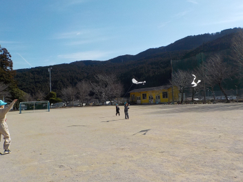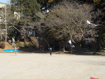 小学校へ凧揚げに行きました。