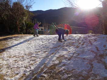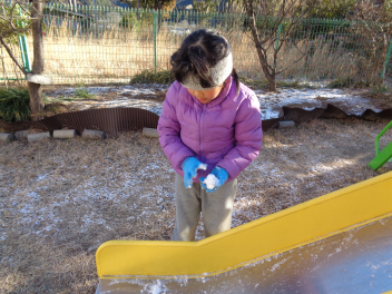 園庭に薄っすら雪が積もりました。