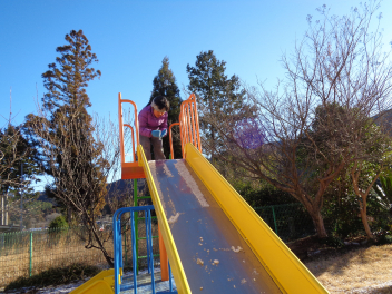 「滑り台の上にもあるよ!」