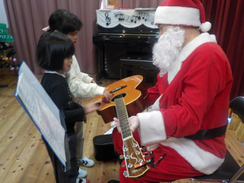幼稚園の園歌と『あわてんぼうのサンタクロース』を歌いました。