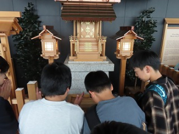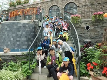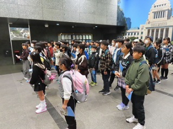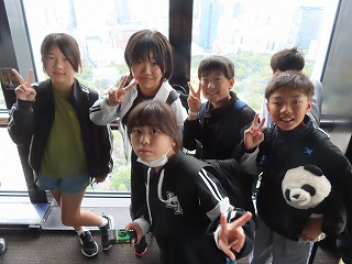 修学旅行の最終目的地は東京タワーでした。展望台から東京の街を見渡したり、一部透明な床から下をのぞいて高さに驚いたりしました。展望室に東京タワー神社があって、そこにお参りしている子もいました。