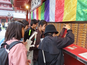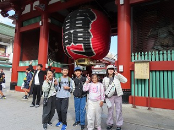 2日目浅草コースは浅草寺からスタートしました。雷門や仲見世をグループで見学し、お土産も買いました。朝早い時間でもたくさんの観光客がいて、驚きました。