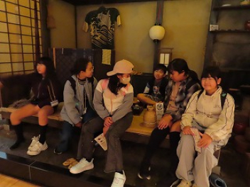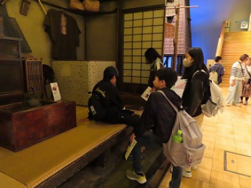体験活動の後は、江戸資料館で江戸時代の暮らしや文化に触れました。江戸の街並みを再現した展示は、建物の中に入ったり展示物に触れたりすることができて、タイムスリップしたような感じでした。