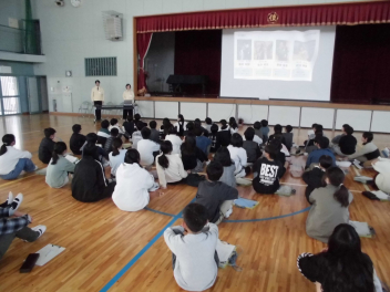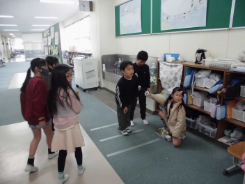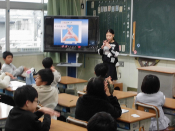 •  今週は保健週間です。そこで、保健委員が全校に、よりよい手洗いの仕方を動画を使って教えてくれました。各クラスを訪れた保健委員が、動画の内容を実演。30秒間、歌を歌いながら、楽しく手をきれいにする方法を紹介。保健委員の説明を聞いた子供たちは、真似をしながら、手を洗う練習をしていました。