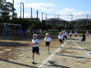 持久走記録会が開かれました。暖かく風もなく、絶好の持久走日和でした。今回から学年に応じた距離を走る方法に変更して行いました。どの子も自分の記録を伸ばすように頑張って取り組んでいて、タイムが伸びたとうれしそうに報告してくれました。保護者の皆さんも大勢応援に来てくださって、応援の声が子供たちの力になりました。ありがとうございました。