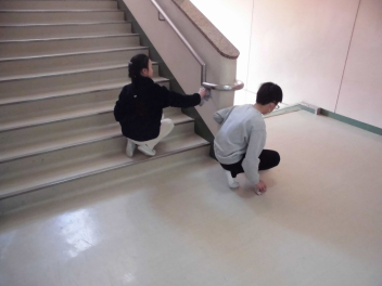 ボランティア委員会は、階段の汚れをきれいにしてくれていました。