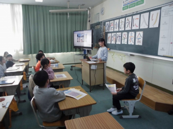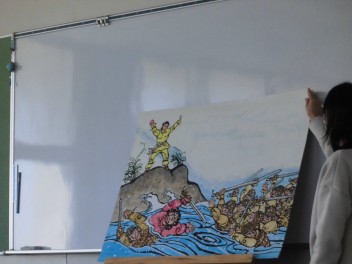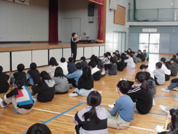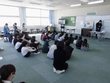 • 伎倍小応援隊の読み聞かせグループの方たちが昼休みに大型絵本の読み聞かせをしてくださいました。今回は3~6年生対象に行いました。以前に1・2年生を対象にした読み聞かせの時に聞けなかった子供たちが集まって、お話の世界を楽しんでいました。ありがとうございました。