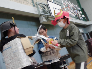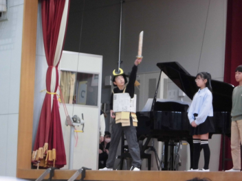 6年生は「PRIDEをもって、いざ」という演目名でした。6年生が戦国時代にタイムスリップして徳川家康と出会うところから始まりました。合戦の場面は観覧席まで下りてきて目の前での迫力ある演技でした。役者がたくさんいて、演技がとても上手でした。「失敗から学ぶことが大事」「未来は自分の手の中にある」というセリフが心に残りました。