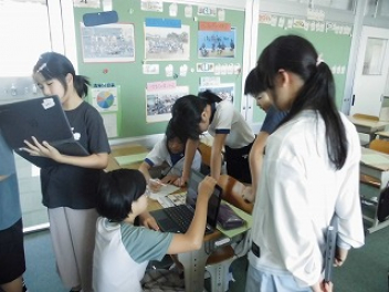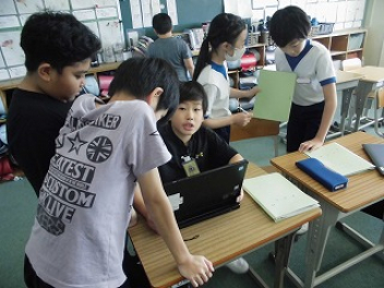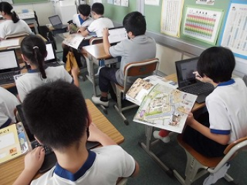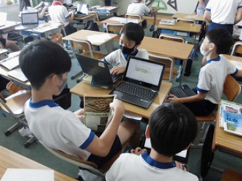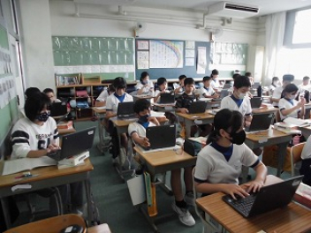 6年生の社会は日本の歴史を学習していて、武士について調べていました。教科書や資料集、図書室の資料などを使って調べたことをタブレットのアプリにまとめていました。6年生の授業は、いつ行っても落ち着いた雰囲気の中、学習が進められています。