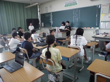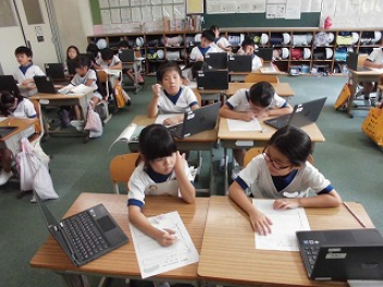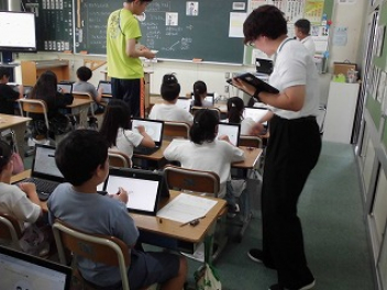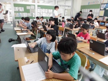 6年生は国語の授業を行っていました。6年生は、ローマ字入力も早くでき、タブレット端末を使うことが当たり前になっています。さまざまな教科で活用されています。