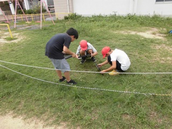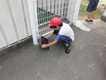 3年生の理科です。運動場にタブレットをもって生き物を探しに行きました。タブレットを使うことが特別なことではなくなっていて、上手に使いこなしていました。