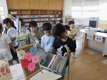 図書室に新しい本がたくさん入りました。支援員さんが校内のいろいろなところに新しい本の紹介掲示をしてくださっています。図書委員が昼の放送でお話のさわりを読んで紹介することもしてくれました。たくさんの子供たちが興味をもって様々なジャンルの本に親しんでくれるとうれしいです。