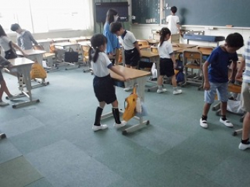 今日は朝清掃がありました。縦割りグループで毎週火曜日と木曜日の朝に行っています。本校の教室の床はカーペット敷きなので、各教室1台ずつ掃除機があります。朝清掃を行って、きもちよく1日の授業をスタートします。