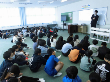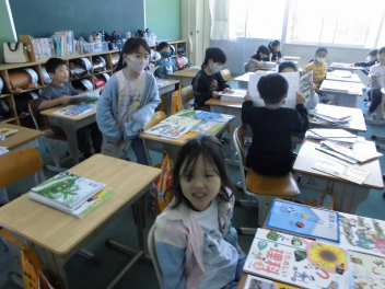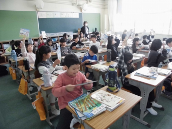始業式後の学級を覗いてみました。新しい教科書をもらって、興味深そうに内容を確認している様子や、学年集会を行っている様子が見られました。