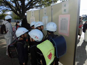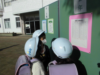 子供たちは、登校すると、昇降口前の掲示板に貼り出されたクラス分けを確認して教室に入りました。
