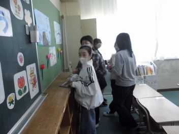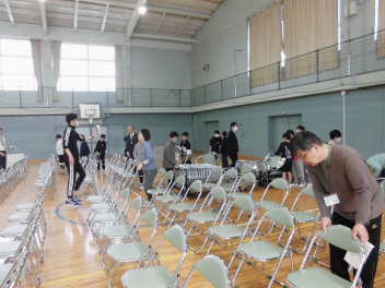 6年生は、体育館の椅子ならべをしたり、1年生の教室の飾りつけをしたりして入学式の準備をしました。最上級生として最初の仕事をてきぱきと行い、短時間で準備が整いました。