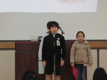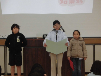 始業式では、3人の代表児童が3学期に頑張りたいことを発表しました。学習について、友達とのかかわりについて、高学年としての自覚など、とても立派な発表でした。3学期は短いですが、目標を立てて充実した日々にしたいと思います。