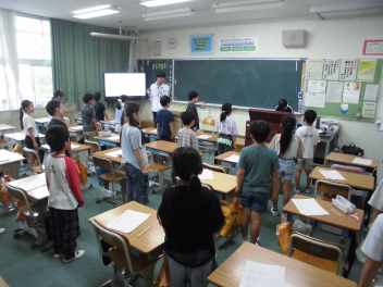 4年生の外国語活動の授業がありました。小学校では、3・4年生は外国語活動、5・6年生は外国語の授業があります。会話を主としたコミュニケーション力をつけることが目標です。