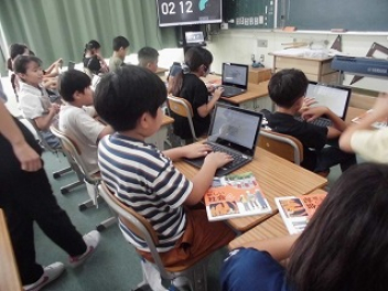 • 1年生国語の授業研究を行いました。教科書教材「うみのかくれんぼ」で学んだ読む力を生かして、ほかの生き物のかくれんぼについても読んでまとめる授業でした。同じ海の生き物でチンアナゴやヤッコエイ、昆虫のキタテハなど、自分が興味をもった生き物について選んで学習を進めます。タブレットを活用してまとめる子もいれば、ワークシートに書いていく子もいました。授業終わりには、「もっとやりたい」という声があるほど学習に集中し、楽しく進められたようです。