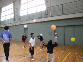体育館では、風船やボールを使った遊びをしていて、とても楽しそうでした。