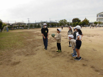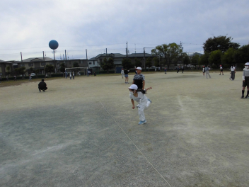 昼休みに縦割り遊びがありました。今日は、天気が良かったので運動場でも活動ができました。おにごっこをしているグループでは、高学年はスキップで追いかけるハンデをつけていました。ドッジボールをしているグループでは、低学年にボールを渡して投げさせてあげている様子も見られました。