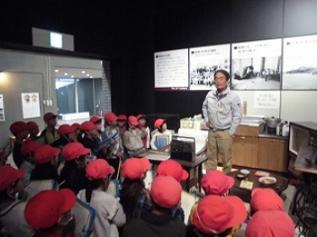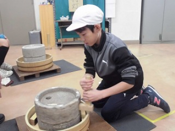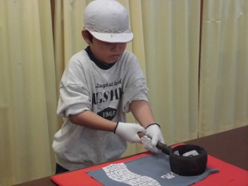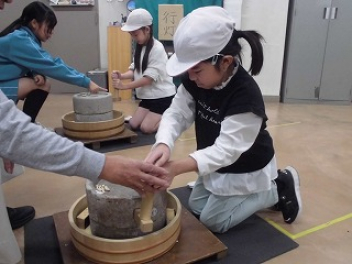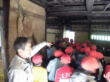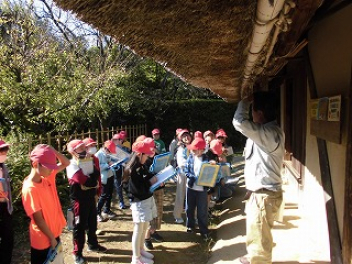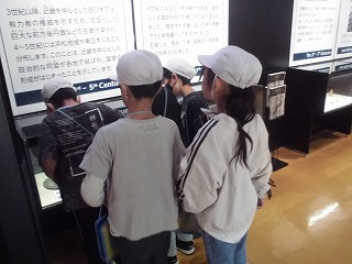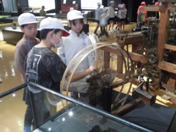3年生が校外学習で博物館に行きました。昔の人の暮らしが分かる展示を見たり、古い道具を使ってみたりしました。かやぶき屋根の古い家屋も見学し、今とは全然違う暮らしぶりを体験しました。
