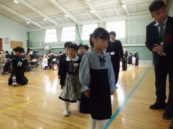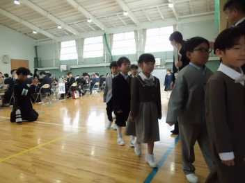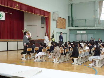6年生は、体育館の椅子ならべをしたり、1年生の教室の飾りつけをしたりして入学式の準備をしました。最上級生として最初の仕事をてきぱきと行い、短時間で準備が整いました。